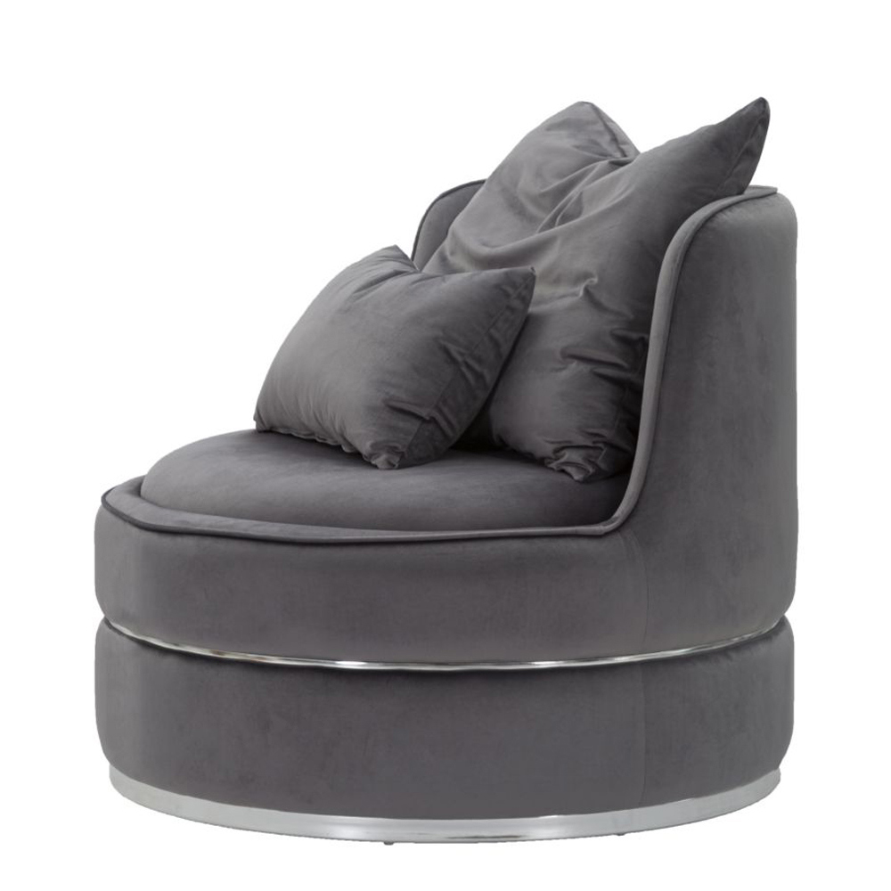 Plush seat and back cushions offer unmatched relaxation, engineered for superior support with high-density foam infill. The built-in swivel base delivers 360-degree flexibility, making Nero ideal for social spaces, home offices, or media rooms—effortlessly adapting to your daily needs. Sleek metallic trim accents around the base add an urban flourish, giving the chair an understated glamour that feels fresh yet timeless.